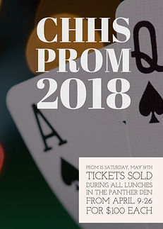 2018 Prom Tickets will be sold from Monday, April 9 - Thursday, April 26 every day in the Panther Den during all lunches.